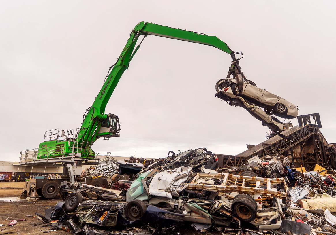 When Metro Group’s team sought to increase efficiency in their shredder operation, they turned to SENNEBOGEN’s electric 855E. “With the tons we are trying to process, we needed something a little bigger with a little further reach,” explained Cole Cowan, Operations Manager for Shredder and Ferrous Operations, “and we didn’t want to worry about diesel motors, fuel, and the DEF system.” They were further incentivised to go electric when they were approved for a state grant that gave Metro Group a roughly 45% rebate for replacing a diesel machine with an electric one.