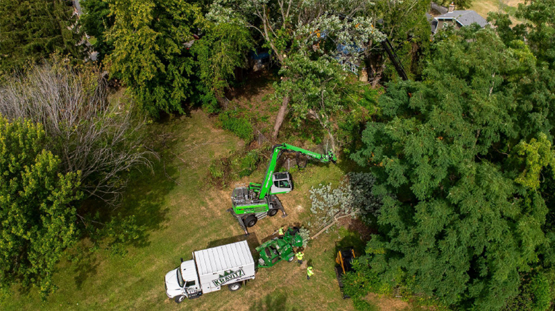 Located in Ferdonia, New York, Kravitz Tree Service is a family-owned business, going on six years, that spans over three counties. They focus primarily on residential tree removal, tree trimming, and stump grinding, as well as contract work with the surrounding counties for tree removal, line clearance, and storm relief. Kravitz Tree started out like most tree care services with a bucket truck and knuckle boom, but has since upped its safety and uptime with a SENNEBOGEN 718E and plans for more SENNEBOGEN tree care machines within the next year.