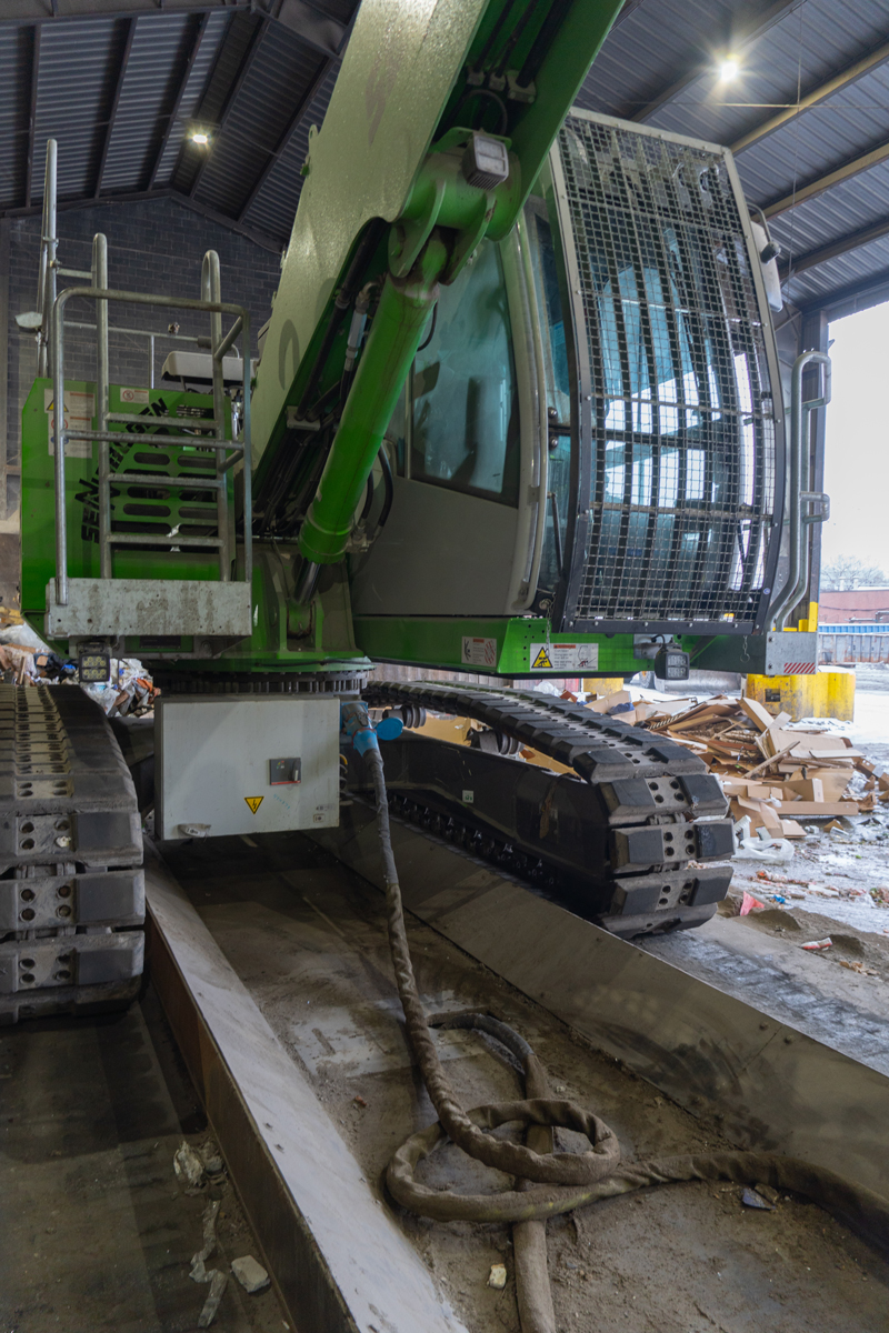 Unlike excavators, SENNEBOGEN’s material handlers are designed to pick up rather than dig in the ground. “SENNEBOGEN engineered their machines to pick up and spin, redirecting their hydraulics,” said Armand, which was the solution they needed.