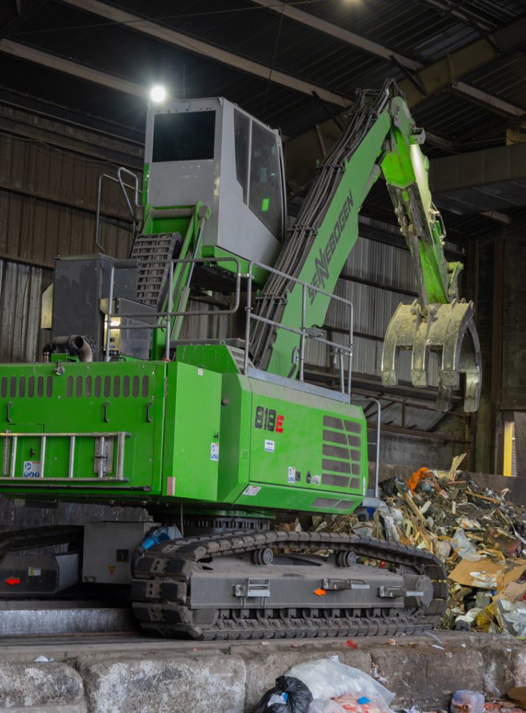 Since 1986 Lemcor has been a solid waste transfer station, currently taking commercial waste. They are permitted to accept roughly 870 tons a day, taking anywhere from 400 to 500 tons on average. Inbound waste comes in via truck and is weighed on a scale. It then dumps into their facility, where their SENNEBOGEN 818E goes to work. It loads the waste into trucks that come through a load-out tunnel, which is then weighed and taken to landfills.