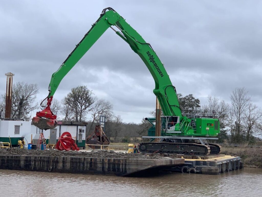 “We originally saw the 875 at CONEXPO,” says Chip Broussard, a third-generation member and current VP of Finance for the family-owned business. ”We also saw a SENNEBOGEN in a rock yard near here; but we bit the bullet at CONEXPO and decided this is our best bet. We had seen similar machines in the area, but nothing of this size and the other machines have to be welded down to the barge. What intrigued us was that the SENNEBOGEN is on tracks. It doesn’t have to be welded down. At times we might be doing rock work and we want a crane on the ground; then we pick up another job and want to put the SENNEBOGEN on the barge. Because of its versatility, we didn’t have to get another barge!”