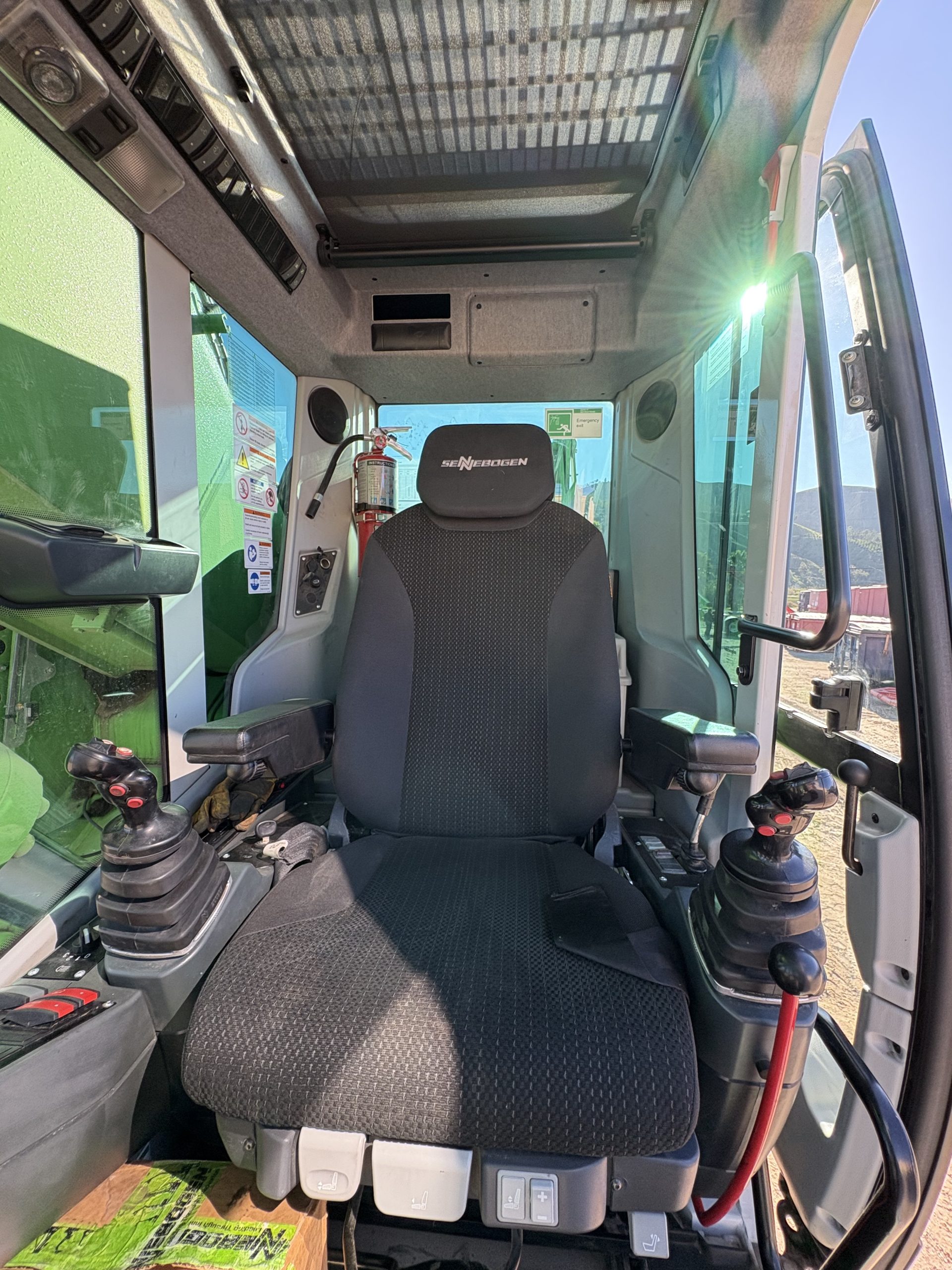 Air suspended and adjustable operator’s seat incl. armrests, seat heater, headrest, seat belt